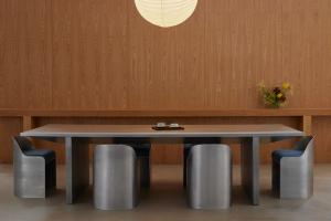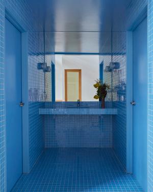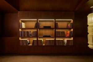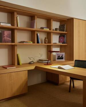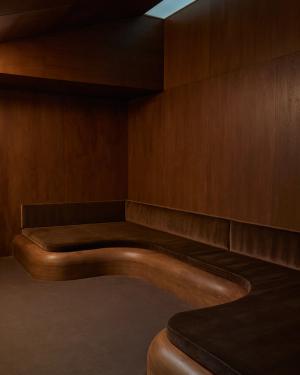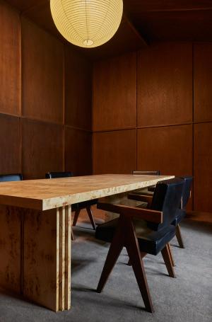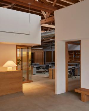 Redefining traditional corporate spaces, Ceremony of Roses elevates the office experience to enhance the clients’ creative process. Collaborating with Madeline Denley of Never Far Studios, the design blends form and function through its custom millwork, industrial accents, and both vintage and bespoke lighting and decor. The interior features various environments tailored to different stages of the creative process. Complete with a tactile listening room with dark wall-to-wall carpeting and a matching custom velvet sofa, a huddle room with plush green mohair upholstery inspired by 70s sunken living areas, and a conference room highlighted by burl panels that showcase a Deco inspired wood table. Each element of the design fosters an atmosphere conducive to inspiration and collaboration. Culver City, 2024