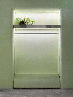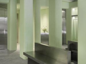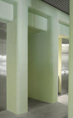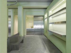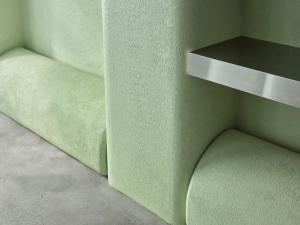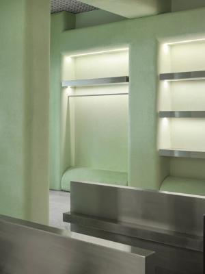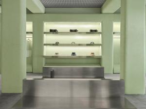 Cultivating a tranquil oasis amidst the city, Malbon Miami provides a peaceful sensory retreat. Approaching the design holistically, inspiration was drawn from the vibrant hues of Miami. The interiors present monochromatic custom stucco walls in a distinct shade of pale green, which echoes the region’s coral rock formations. The calming color palette contrasts the industrial stainless steel accents and open aluminum grid ceiling. The centerpiece features a meticulously laid pattern of handmade Mexican tiles that anchors the space both physically and energetically. Custom stainless steel benches provide grounding geometric seating, reflecting Malbon’s modern take on golf culture. Additionally, custom door knobs pay homage to the brand’s Pebble Beach boutique, seamlessly tying together the space's serene yet dynamic atmosphere. Miami, 2023