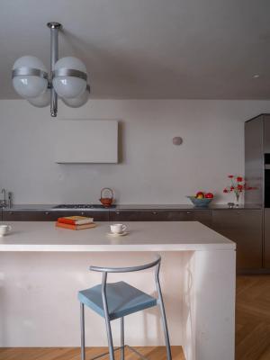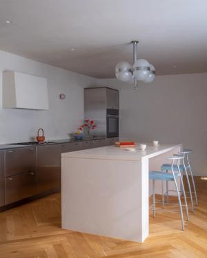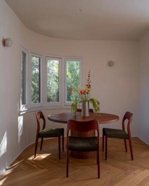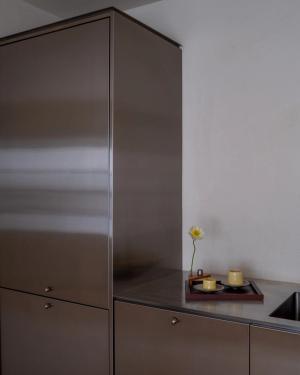 Harmonizing natural materials with sleek stainless steel, Tracy Street's kitchen evokes equal parts austerity and invitation. Through the attentive utilization of light, color, contemporary appliances, and vintage furnishings the space exudes modernism rooted in historical context built to endure. Los Angeles, 2024